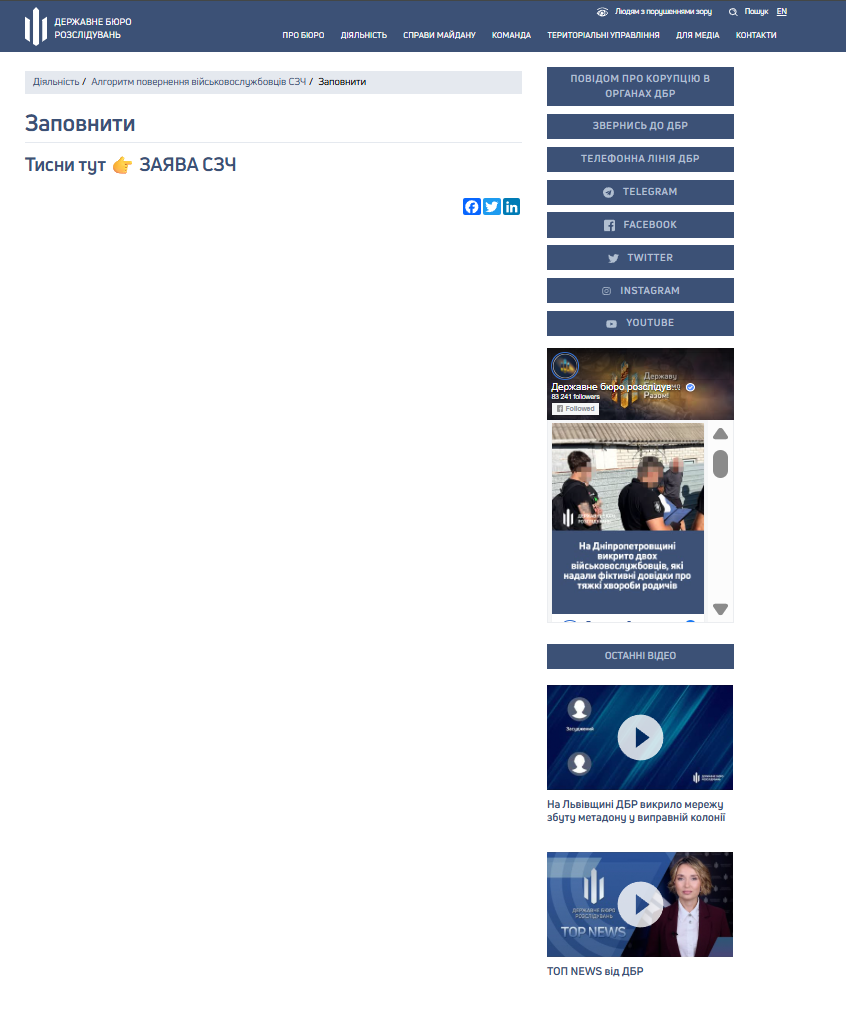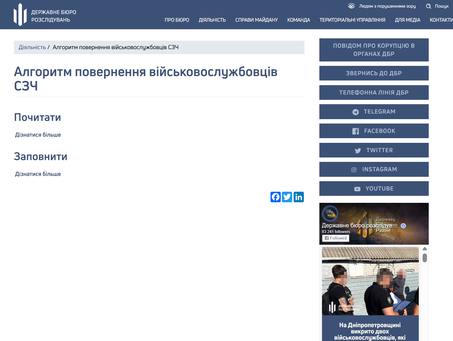 Державне бюро розслідувань розмістило на своєму сайті АЛГОРИТМ повернення військовослужбовців, які самовільно залишили військову частину чи місце служби або вчинили дезертирство.