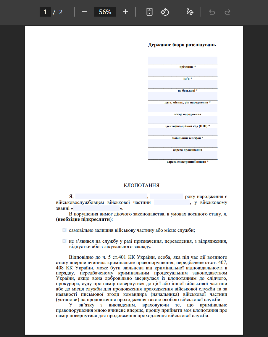 ДБР опублікувало на сайті алгоритм та заяву для повернення СЗЧ