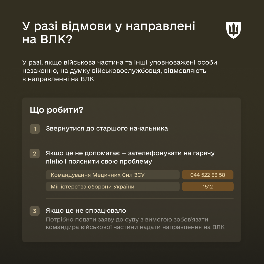 - якщо це не допомагає – зателефонувати на гарячу лінію Командування Медичних Сил ЗСУ (044 522 83 58) та/або Міністерства оборони України (1512) і пояснити свою проблему;