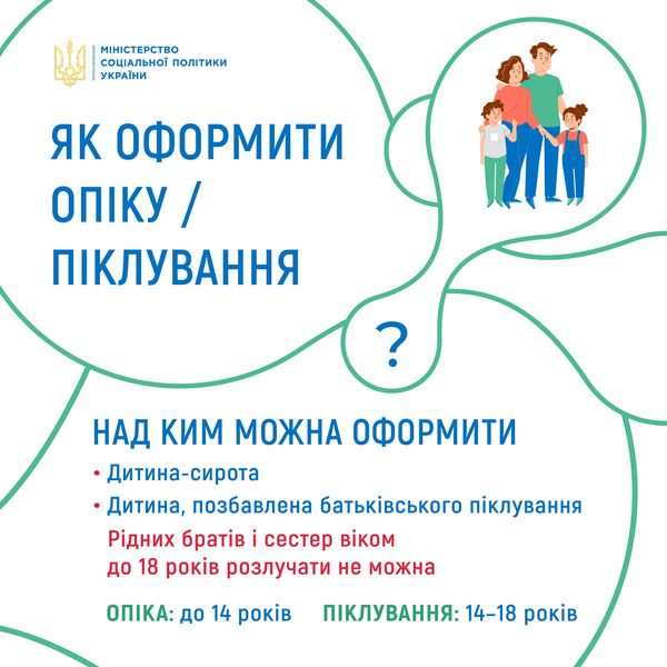 У Міністерстві соціальної політики України нагадали процедуру оформлення опіки чи піклування.