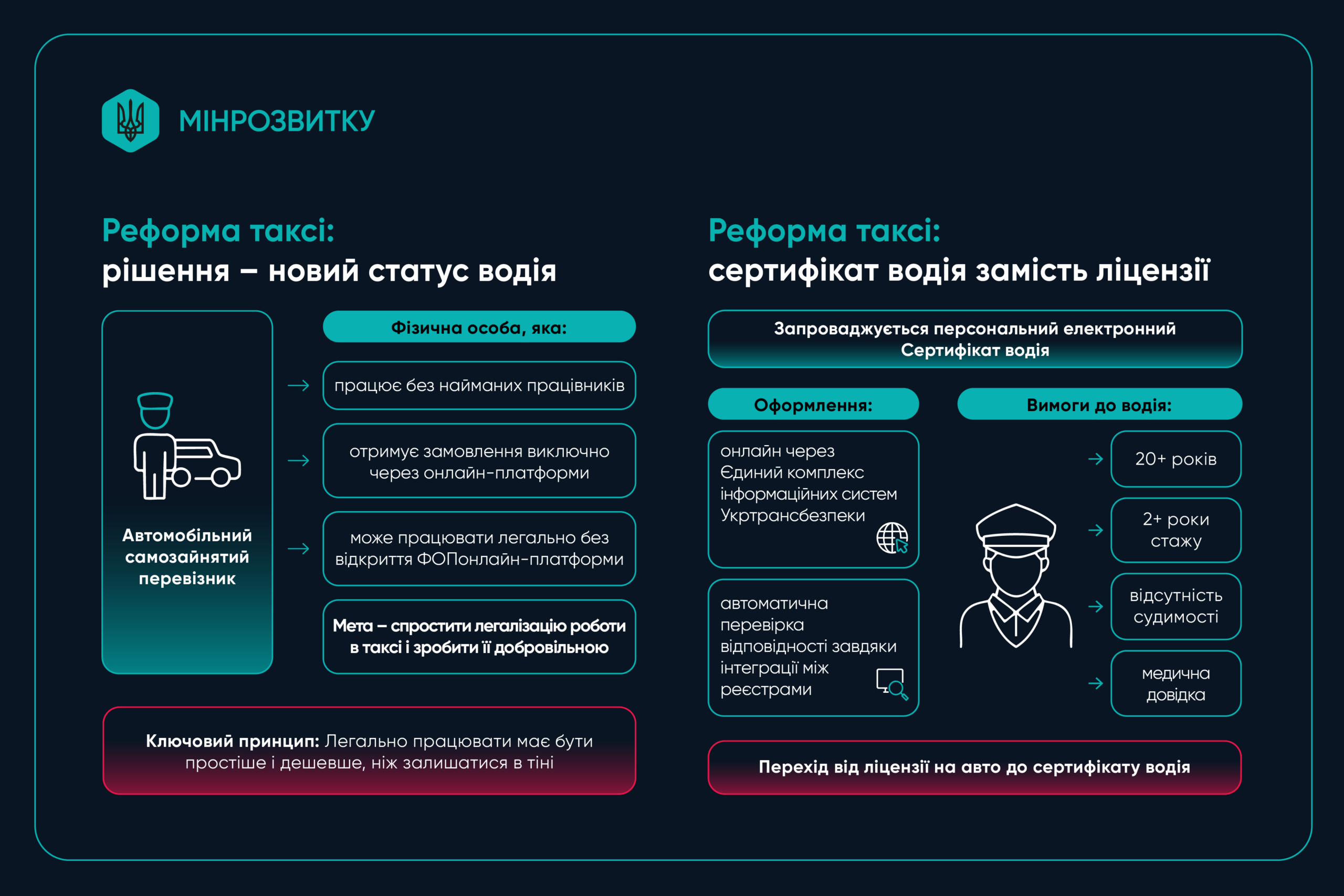 Мета – створити справедливі правила для водіїв, зрозумілі механізми контролю для держави та безпечний сервіс для пасажирів.
