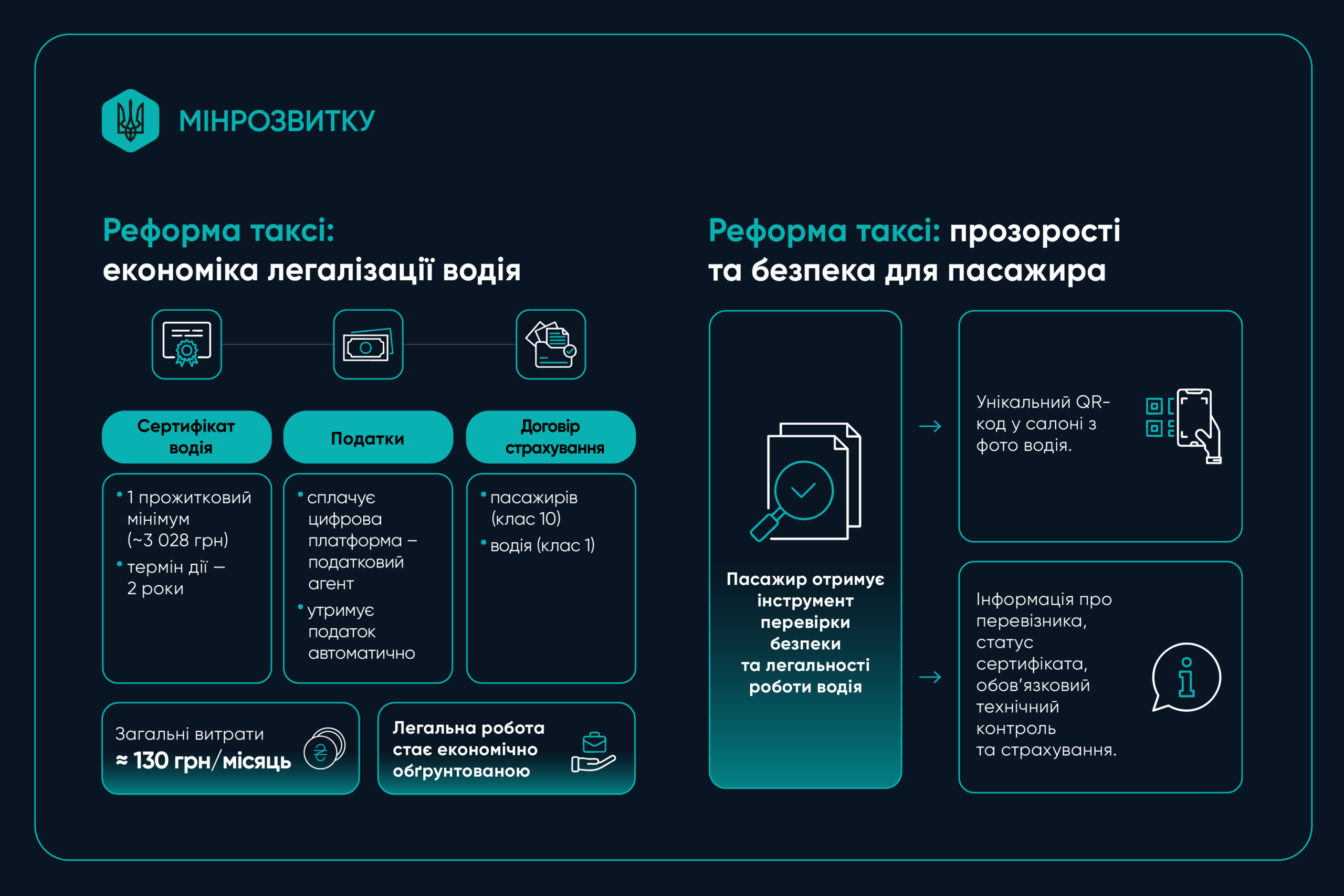 Орієнтовні витрати на легалізацію — близько 130 грн на місяць. Модель робить легальну роботу доступною та економічно обґрунтованою.