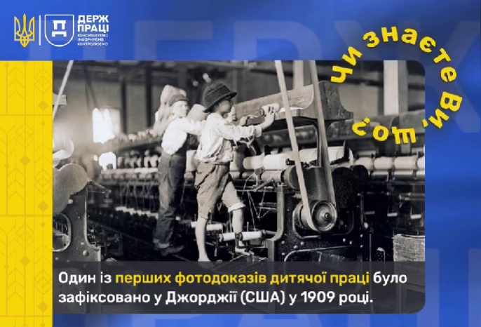 Один із перших фотодоказів дитячої праці було зафіксовано у Джорджія у 1909 році, повідомили у пресслужбі Держпраці.
