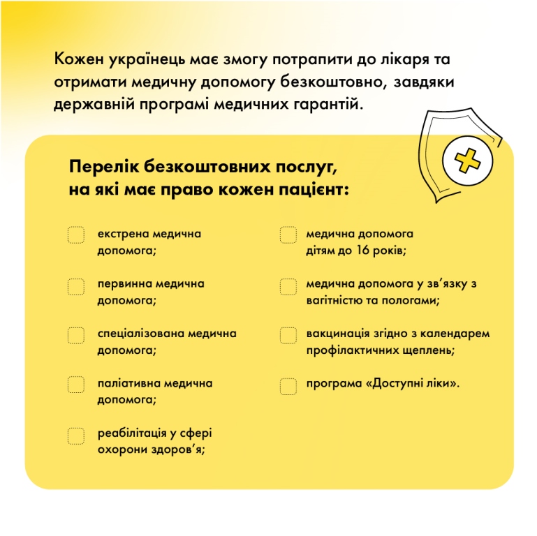 Перелік безплатних послуг, на які має право кожен пацієнт:
